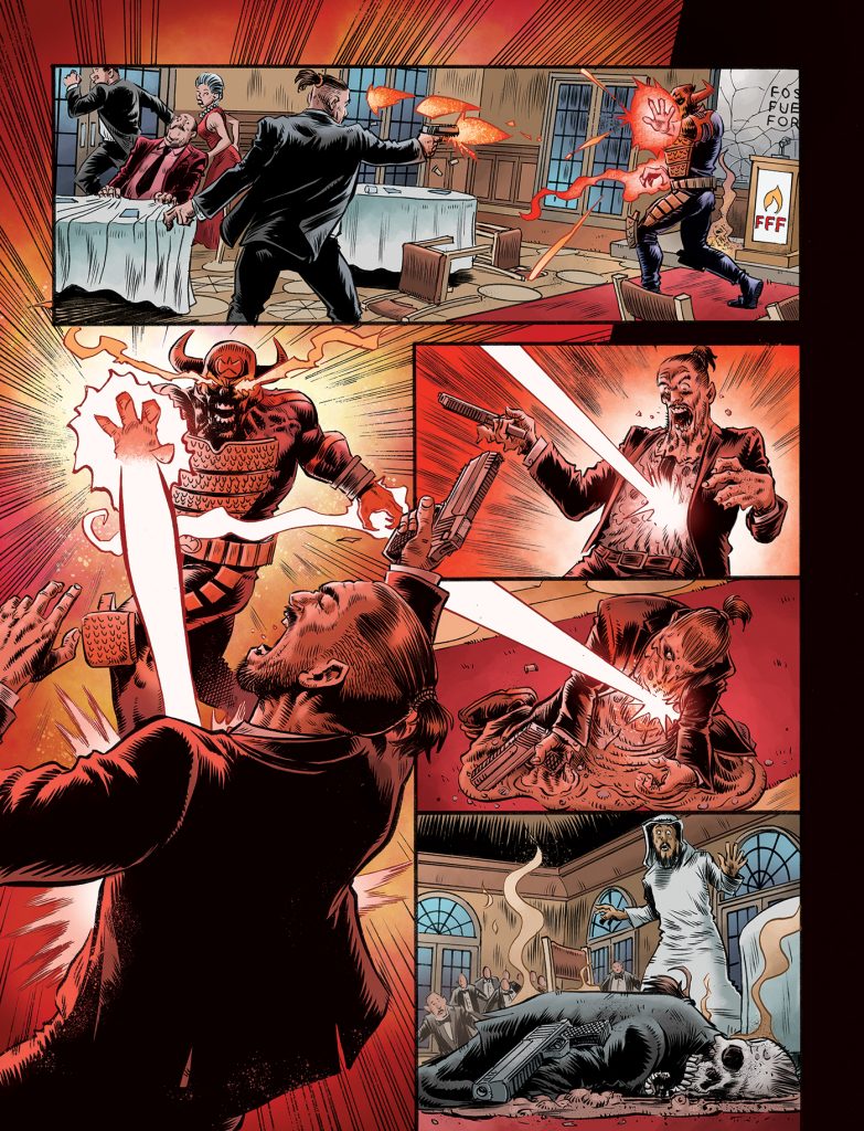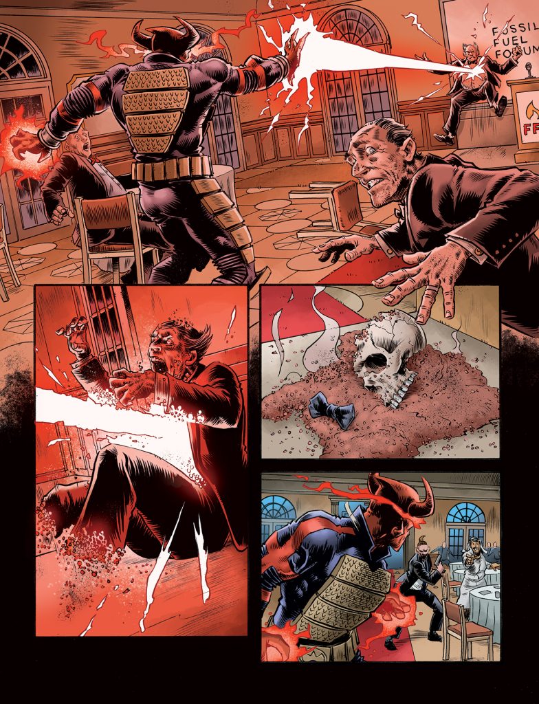 He’s killing in a good cause! Rok gets tough in ‘Rok The World’, the new story starting in the Megazine in the New Year. Art by Dan Cornwell, colours by Jim Boswell.